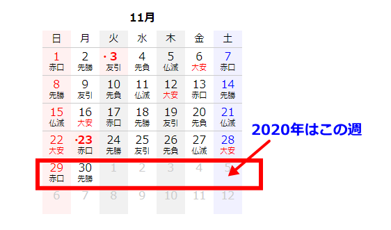 2020年の11月最終週のアノマリーは、11月最後の営業日が入る週なので、11月30日月曜日の週になります。