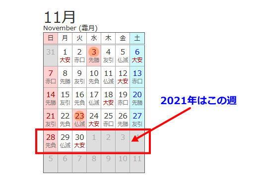 2021年の11月最終週のアノマリーは、11月29日から始まる週です。