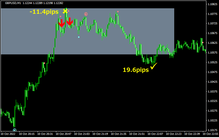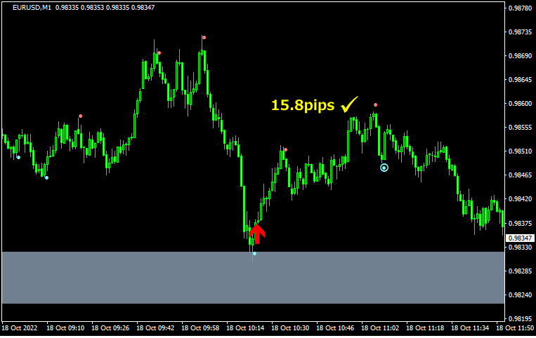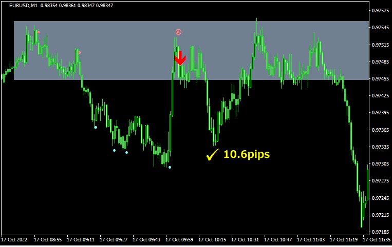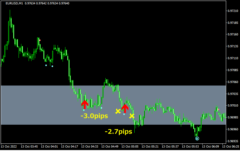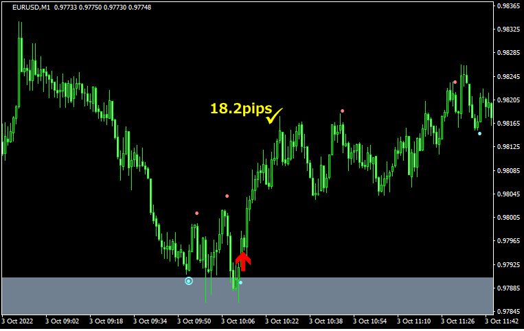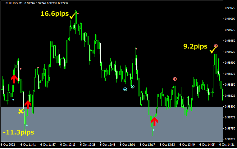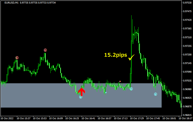 先ほどのエントリー前の急上昇のポイントでドットが点灯。