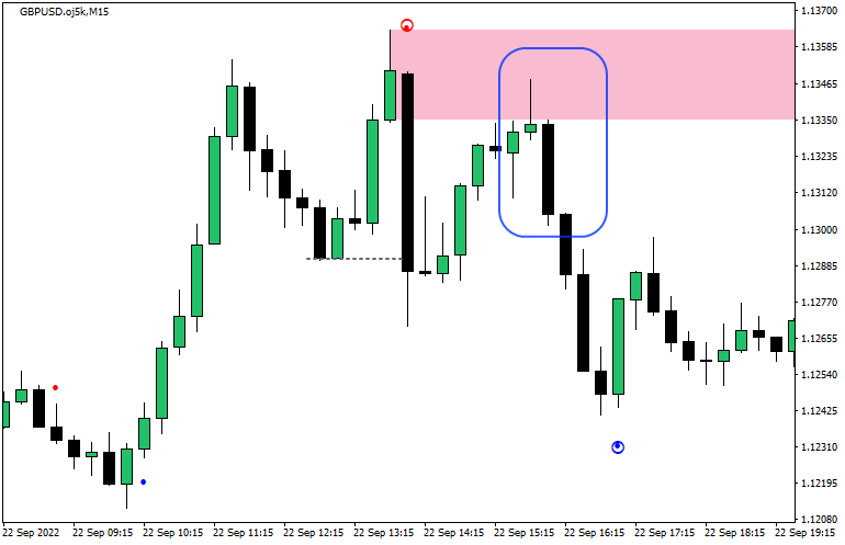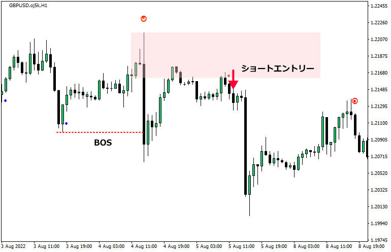 本手法における重要な裁量判断は、ドットの付いた高値や安値が、直近の高値や安値をしっかりとブレイクしてオーダーブロックになれたか?になります。