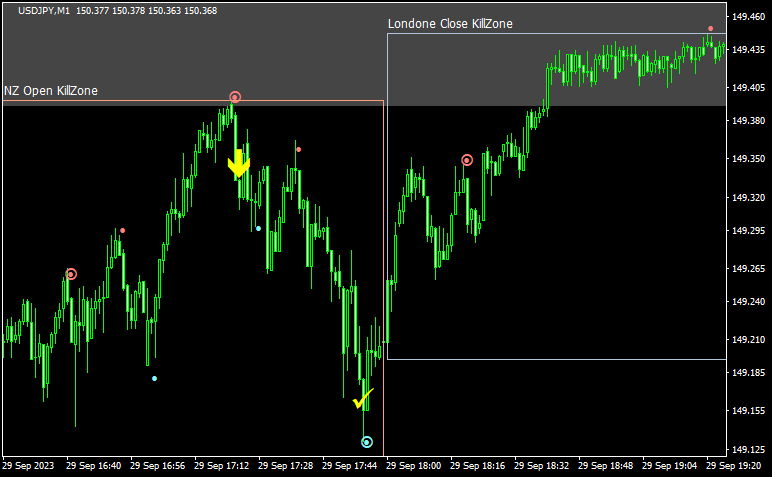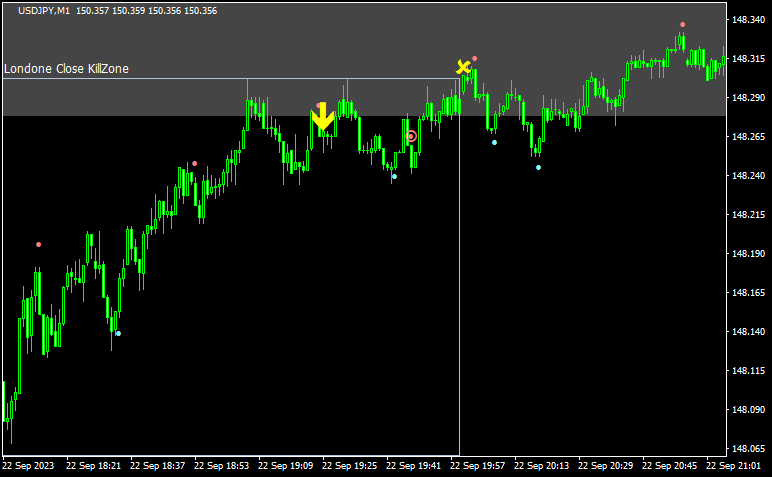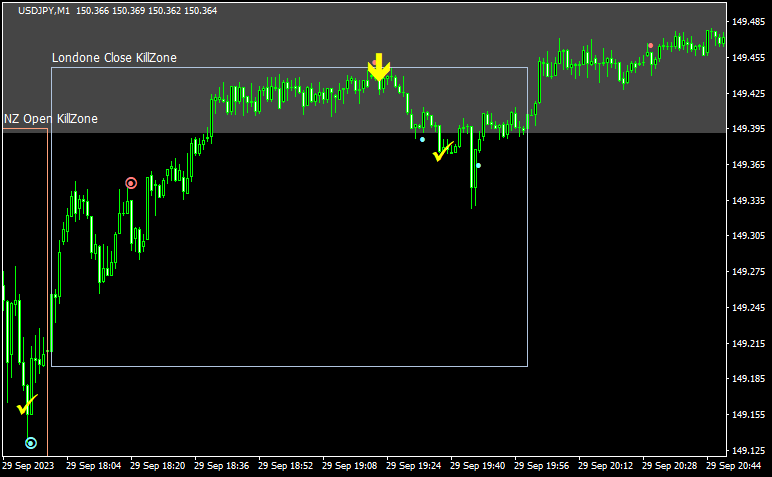 今回は新たにエントリーできる時間を限定して、「London Open KillZone、NY Open KillZone、London Close KillZone」の3つの時間帯のみとします。