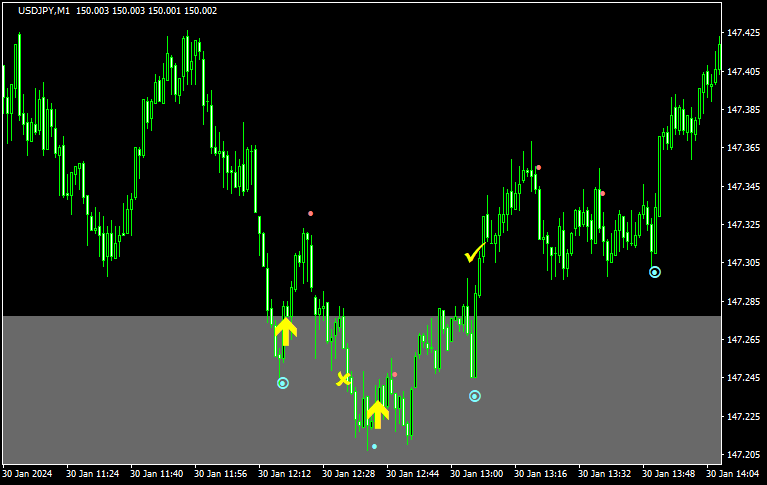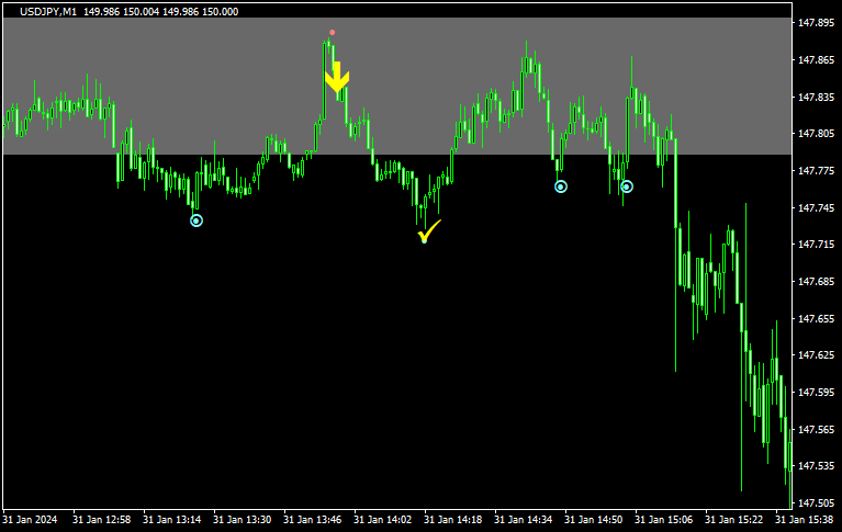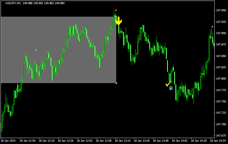 このルールで1月のドル円を検証した結果は以下の通りとなりました。