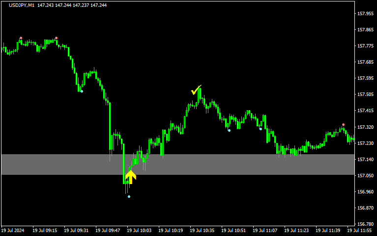 このルールで7月のドル円を検証した結果は以下の通りとなりました。