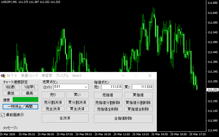 - 過去の動きをリアルタイムのように再現してチャートを動かせる