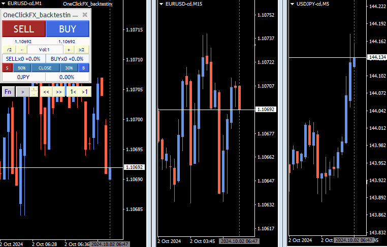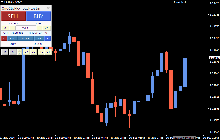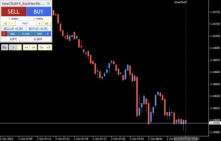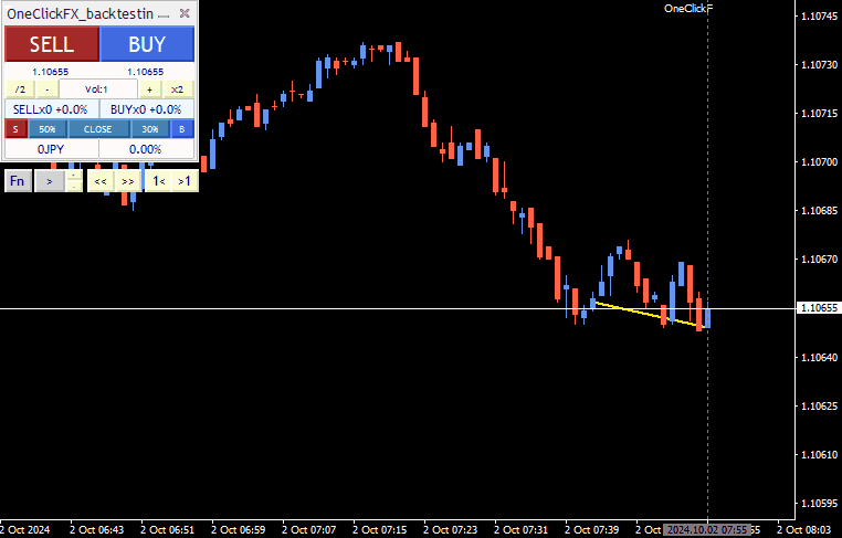 パネル上のSELLやBUYのボタンをクリックすると、過去のチャートで疑似売買(練習)もできます。