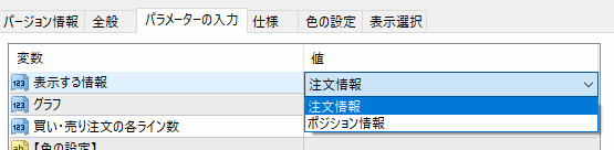 Orderbook2では、「注文情報」と「ポジション情報」の2種類のどちらかを選んで表示することになります。