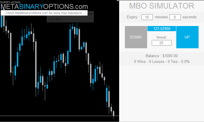 しかし、ここでご紹介している練習ツール(EA)を稼働させて、MBO_Binary_Options_Simulatorを表示させると、過去の動きの中でバイナリーオプションの練習ができます。