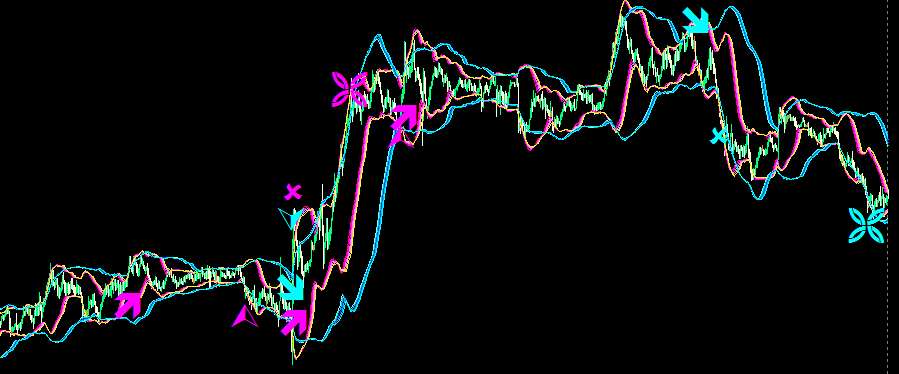 トレンドの転換は以下のようにチャート上に矢印で表示されます。
