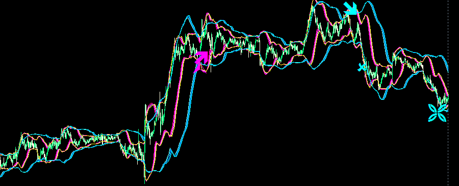 ビギナーモードでは「エントリーサインが出たらすぐにエントリー」ですが、追撃ブーストでは2種類のボリバンの状態を見てシグナルを選別してやる必要があります(無裁量で選別可能です)。
