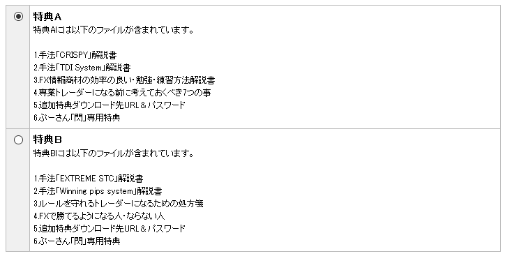 特典Aか特典Bのどちらかのラジオボタンをチェックされた上で商材のご購入をお願いします。