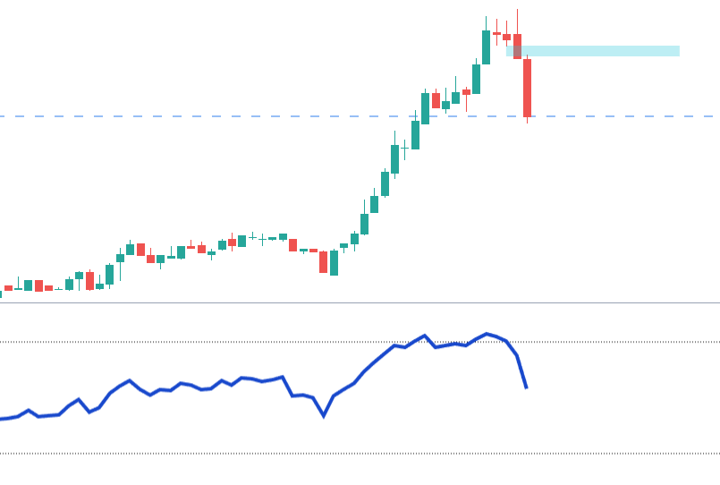 - RSIが80から下げる流れでローソク足チャートで下落FVGが生じる