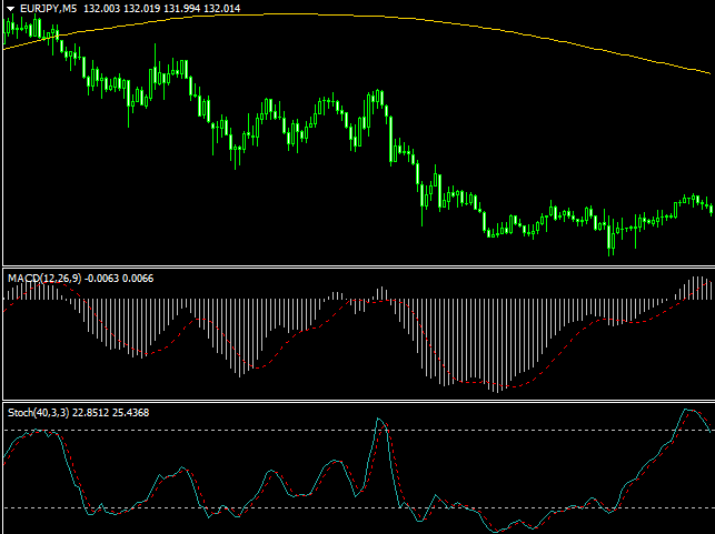 使用するインジはスピードスキャルとは少し違って、SMA、MACD、ストキャスティクスを使います。