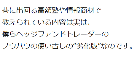 FXの手法を販売するのがセールスレターなのですが、中には手法について一切言及しないものもあります。