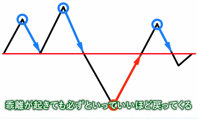 為替市場はこの水平ラインラインを軸にしてサイクルが形成されており、スマート・リターンFXではこの水平ラインから乖離したところを逆張りしていく!と言うのがメインロジックになります。