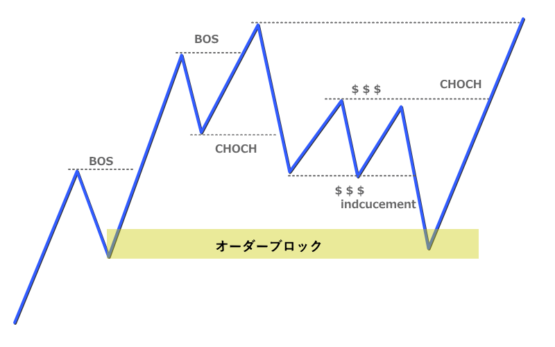 SMCでは様々な専門用語が存在しますが、個人的に優れていると思うのは、各高値安値のラインやゾーン、特定の値動きに対して意味を持たせている点です。