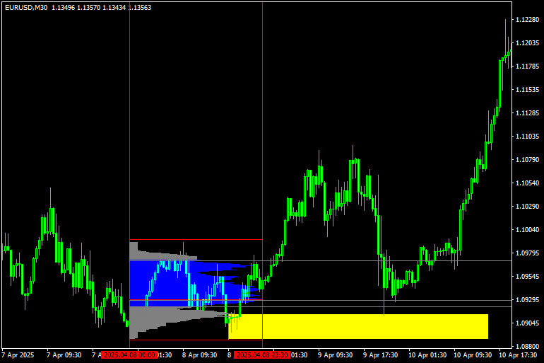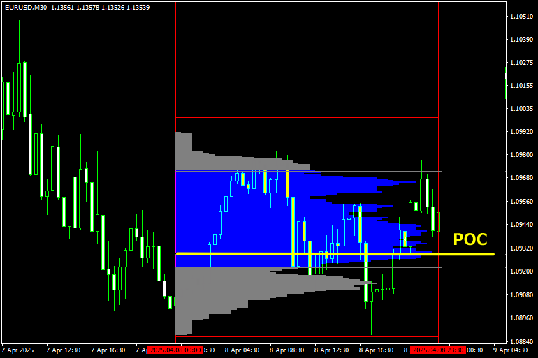 例えば4月8日のユーロドルのボリュームプロファイルは以下のようになっていました。