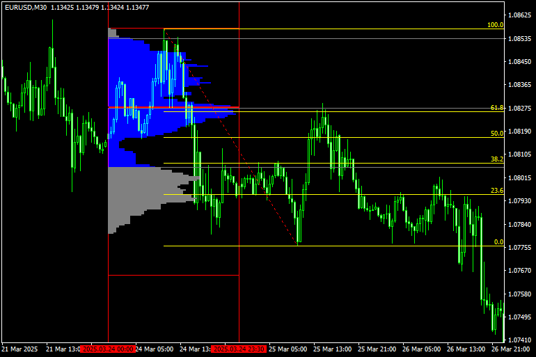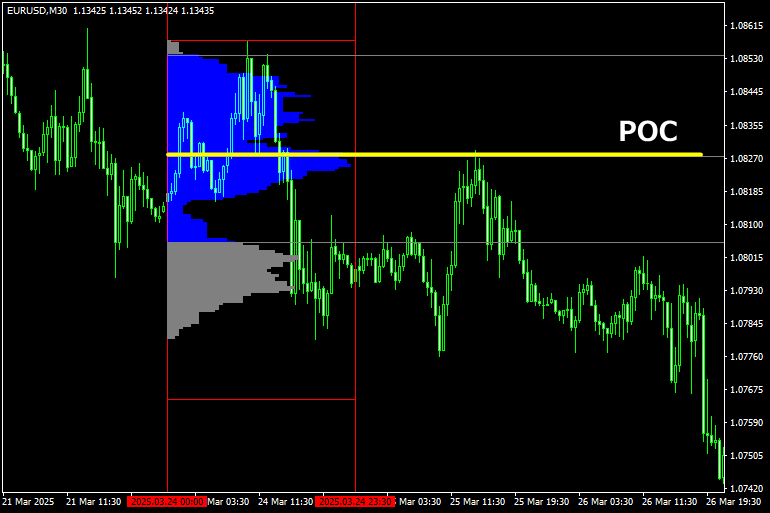 3月24日のユーロドルのボリュームプロファイルは以下のようになっていました。