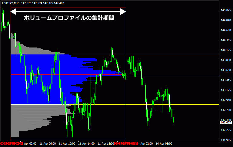 まずボリュープロファイルは出来高を集計する期間を指定する必要があります。