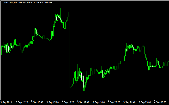下のチャートは9月3日のドル円のチャートで、ISM製造業景況指数発表で暴落しました。