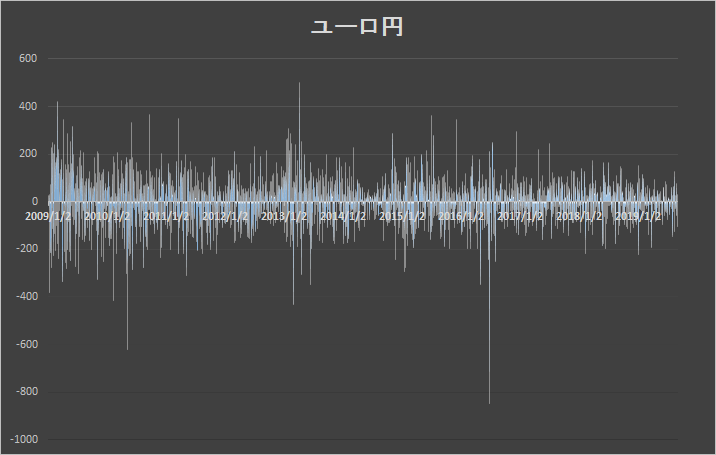 ユーロ円も平均の値幅で見ると陰線も陽線も大きな違いはありません。