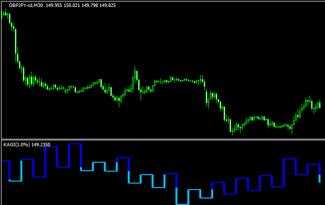 カギ足は株式の方で人気の高いチャート表記方法で、練行足やP&Fと同じく、非時系列のチャートです。