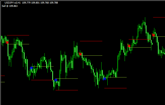 ローソク足上にラインが引かれ、それを抜けたらエントリーサインが出る仕組みです。
