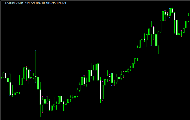 ローソク足の「包み足」と「はらみ足」を検出してドットで示すインジです。