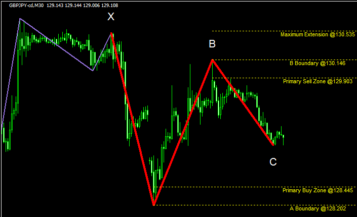 ジグザグのようなラインで相場の波を表示して、そこから売りゾーンや買いゾーンまでを示してくれるインジです。