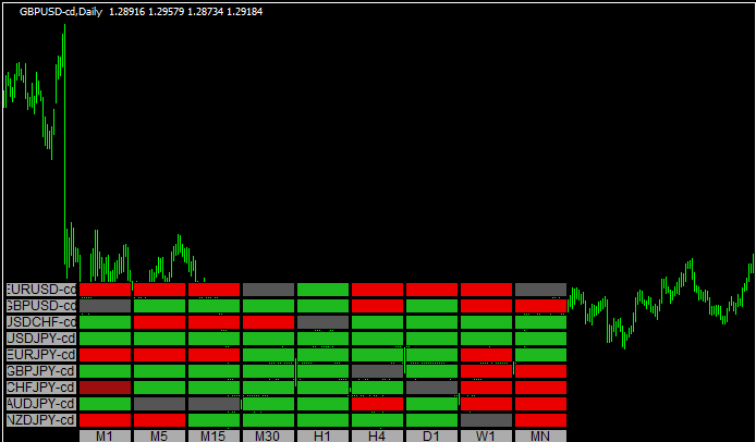 MACDを使って各通貨ペア・各時間足のトレンド状況をヒートマップにして示すインジです。