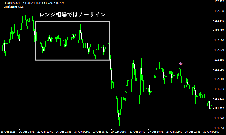 トワイライトゾーンの通常のルールであれば、レンジ相場であっても勝てることが多いですが、「トレンドフォロー型」と言う以上はレンジでのサインは避けたいところです。