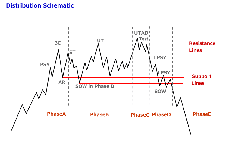 Distribution中に高値をブレイクするも、それがダマシとなって反転する流れですね。